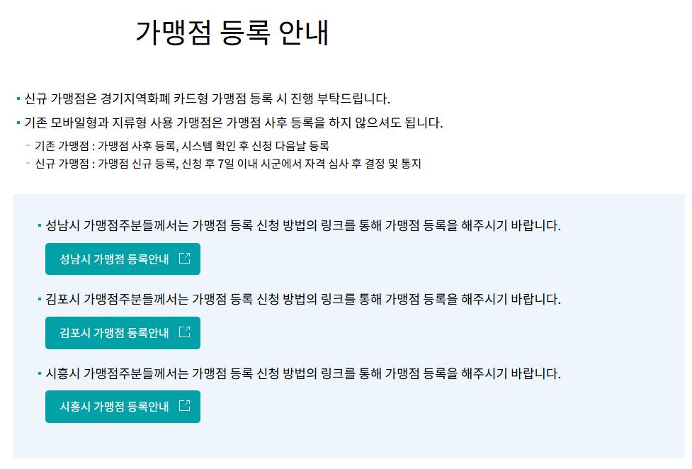 - 회원가입: 경기지역화폐 공식 홈페이지 접속 후 사업자 회원가입