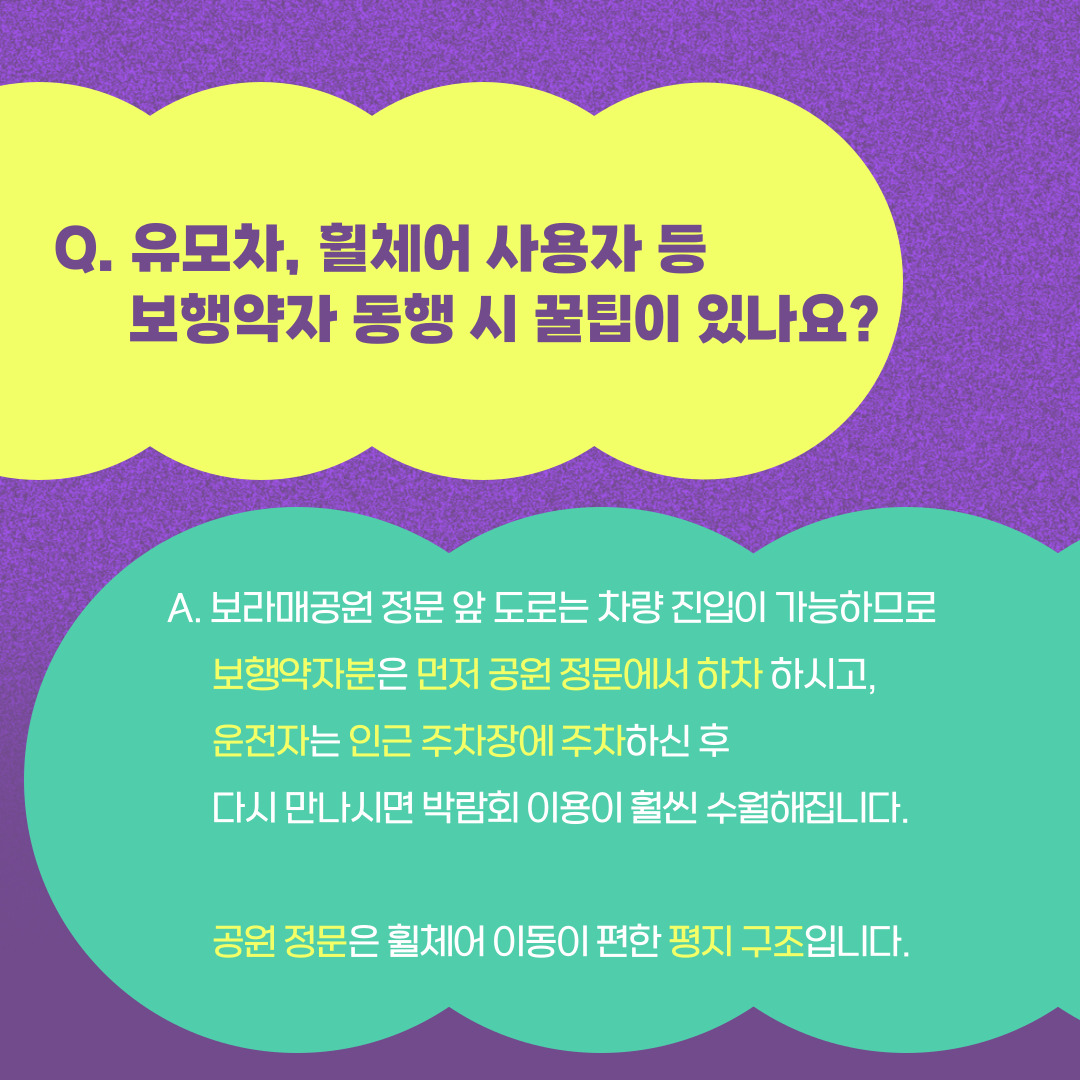 공원 정문은 휠체어 이동에 최적화된 평지 구조로 되어 있어 보다 안전하고 편안한 입장이 가능합니다.