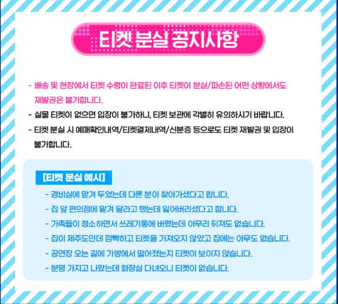 - 여벌 옷 & 속옷: 공연 끝나고 갈아입을 옷은 필수! 대중교통 이용 시 다른 분들께 피해를 주지 않기 위해서라도 꼭 챙겨주세요.