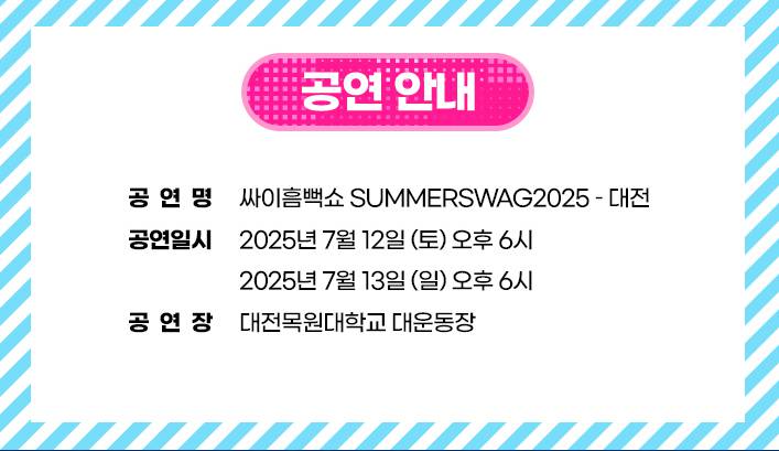 2025년 싸이 흠뻑쇼 대전 공연은 2025년 7월 12일(토), 13일(일) 양일간 대전 목원대학교 대운동장에서 개최됩니다! 날짜와 장소를 꼭 기억해주세요.