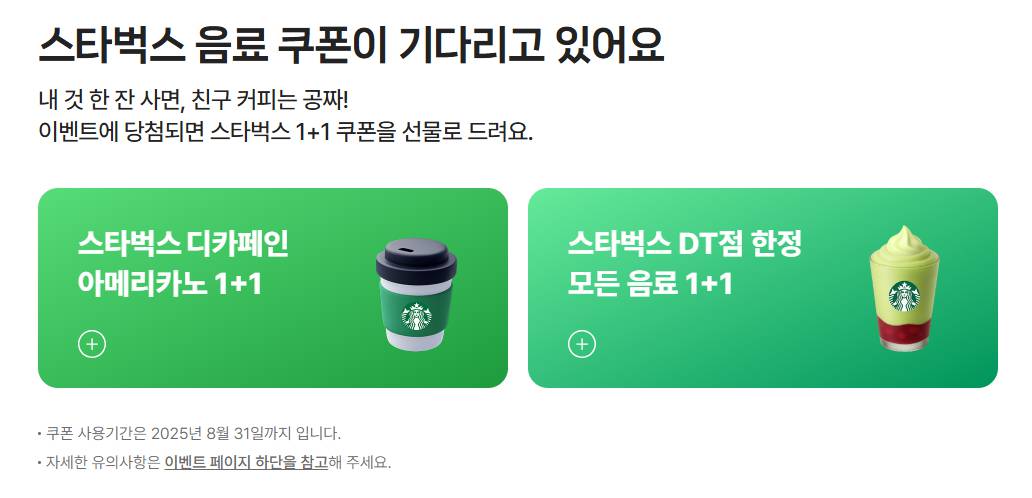 특히 아메리카노부터 DT 매장 전용 쿠폰까지 다양한 구성으로 만날 수 있어요.